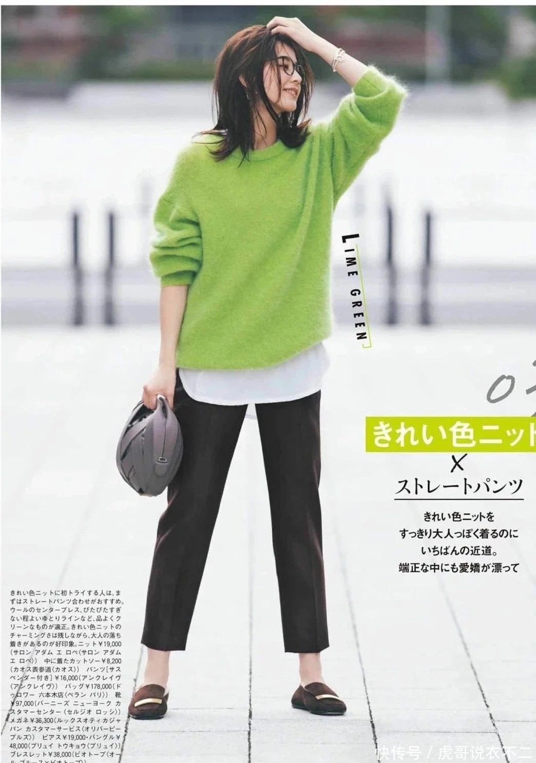 初夏的衣橱需要一抹治愈系色彩。选择草绿色针织衫,搭配黑色烟管裤时,可以叠穿一件白色T恤。这种"上亮下暗"的搭配法,既提亮肤色又收缩下半身视觉,特别适合梨形身材。鞋子推荐黑色乐福鞋或者平底鞋。