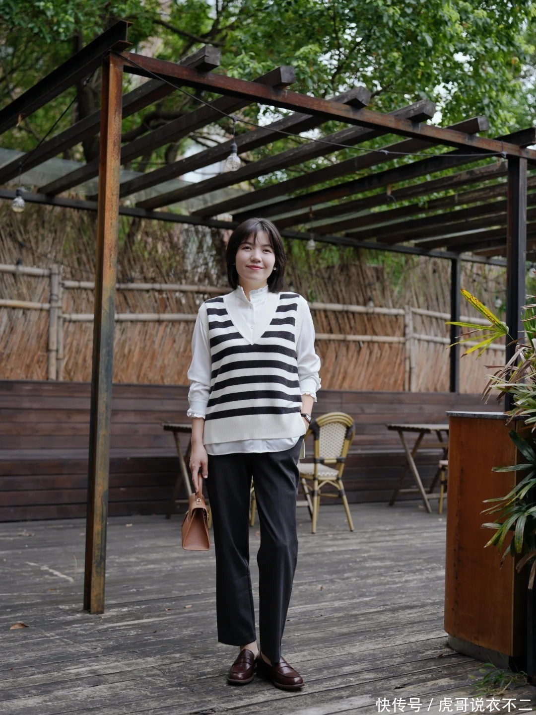 学院风与通勤感的完美融合。黑白条纹针织马甲内搭纯棉白T或者衬衫,下装选择带有中线设计的黑色烟管裤,用棕色单鞋点睛。这种搭配适合需要经常开会的职场女性,既保持专业形象又不失亲和力。马甲选择V领设计,能拉长颈部线条,搭配精致锁骨链更显优雅。