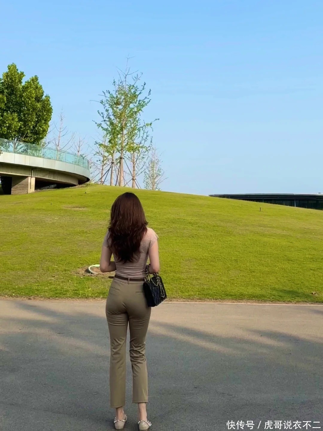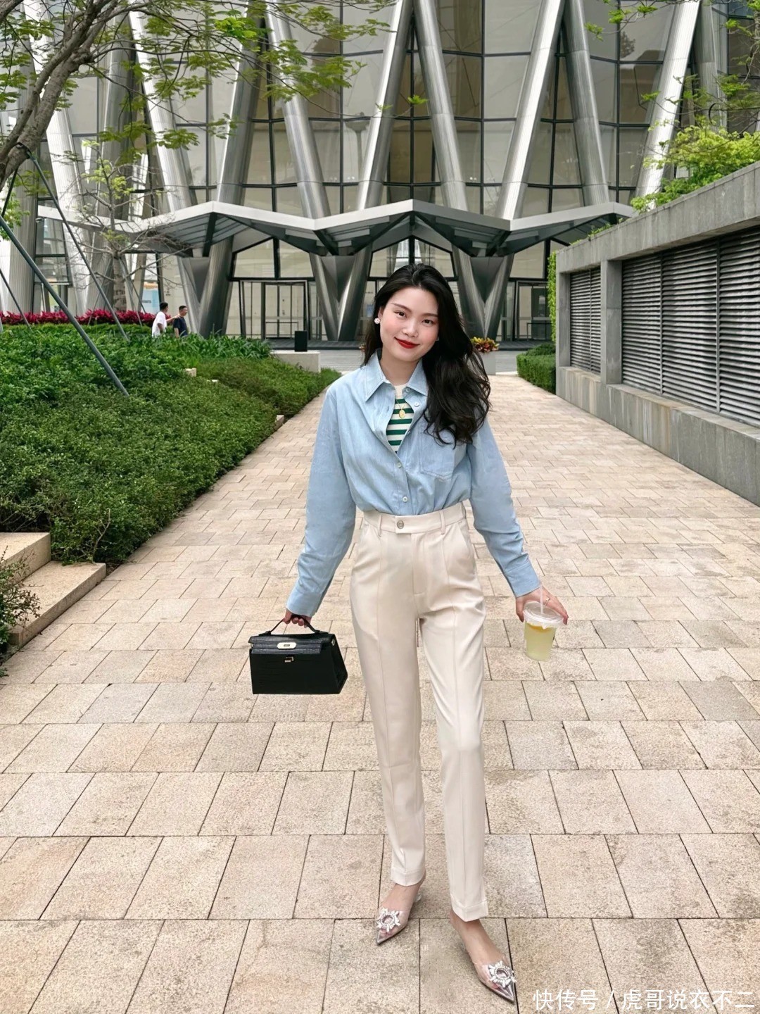 三、卡其/灰烟管裤:高级感的代名词搭配1:白衬衫+卡其色烟管裤